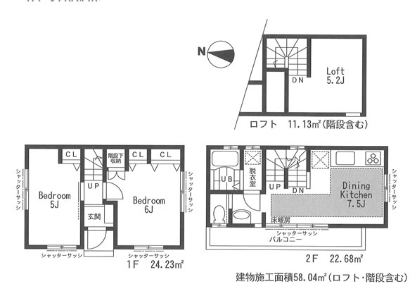 58.04u(施工面積、ロフト・階段含) |